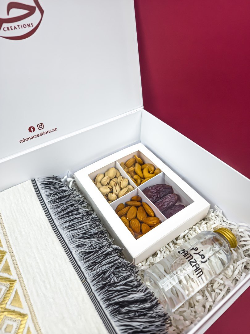 - Made in UAE: Our prayer mat gift set is proudly made in the UAE and designed by our team at BoxSaat.com.